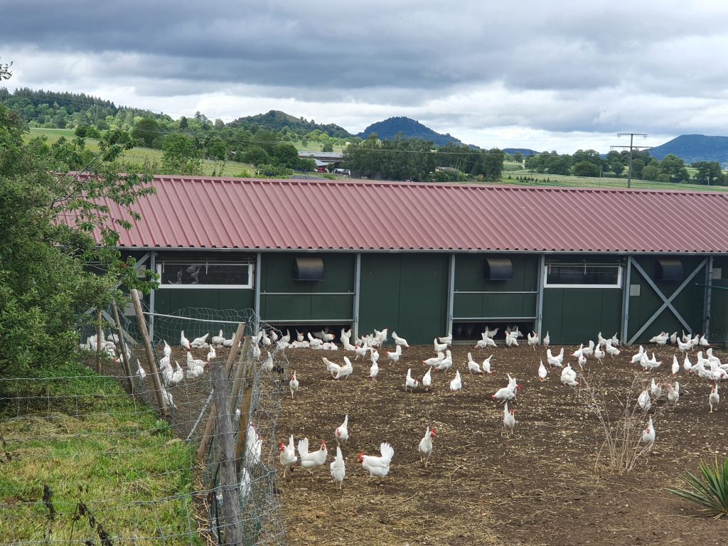 Wir haben glückliche Hühner, die bei jedem Wetter nach draußen dürfen.
